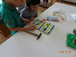 3年生は図画工作科で、釘打ちに挑戦しています。