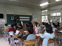 4年1組は理科で、空気の学習、4年2組は、音楽でリズムアンサンブルを作りました。