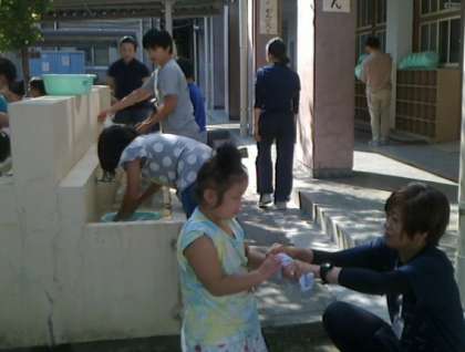 全自動洗濯機があたりまえの時代ですが、実際に手作業で洗濯をする貴重な体験をしました。部屋にもどり、服のたたみ方も学びました。手で折り目をつけて、きちんとたたみます。洋服屋さんで売っているような服のたたみ方ができました。