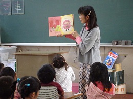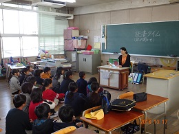 今日は、5年生と1年生の教室に、読み聞かせにきていただきました。