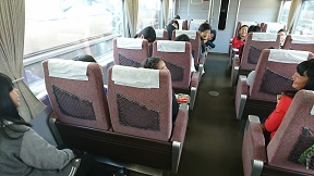 車内では、ルールやマナーを守って、楽しく過ごしています。