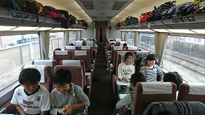 6年生は、予定通りの時間に近鉄電車に乗り込みました。