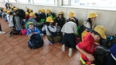 鳥羽水族館の見学が終わり、帰りの電車を待っています。