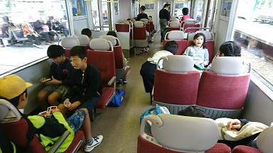 大阪へ向かう電車の中で、みんなどんな話をしているのでしょうか?