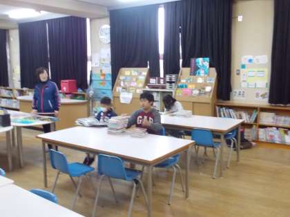 二人の先生からの読み聞かせを楽しく聞いた後、さくらんぼ教室1と図書室とに分かれて、それぞれに好きな本を選んで静かに読書を楽しみました。