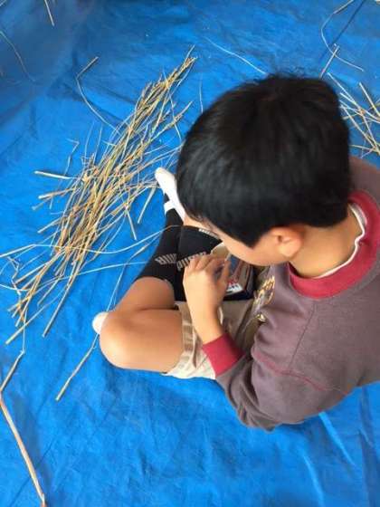 牛乳パックや割り箸を使って、稲穂から米粒を外していきます。