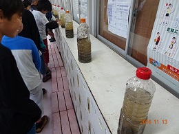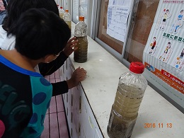 ペットボトルに沈んだ泥や土、石などを観察しました。
