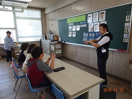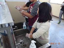 そのあと、正しい手の洗い方を学習して、実際に手洗い場で洗ってみました。