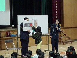 今日は、西成警察署の方に来ていただき、交通安全について学習しました。