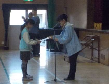 12月4日(月)には、学校に届いた表彰状が三人の代表の人に渡されました。今回は、読書感想文と消防の絵について表彰を受けました。それぞれのがんばりを認めてもらって、またいっそう岸里っ子の励みになります。