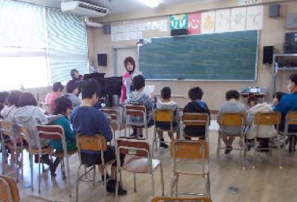 さくらんぼのみんなで初めて音楽室に集まって、元気な歌声を響かせました。