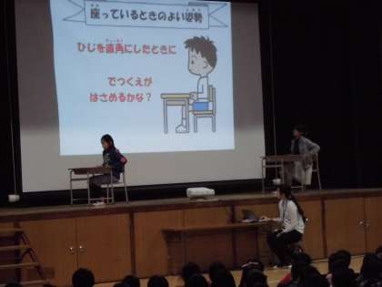 5時間目、全校児童が集まって、姿勢について考えました。保健委員会の児童の発表、学校医の赤木先生からお話を聞きました。立っているときの姿勢・座っているときの姿勢、みんなで気をつけていきましょう。