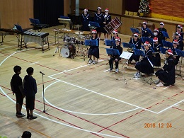成南中学校のブラスバンド部の人たちが、クリスマスプレゼントに演奏会を開いてくださいました。