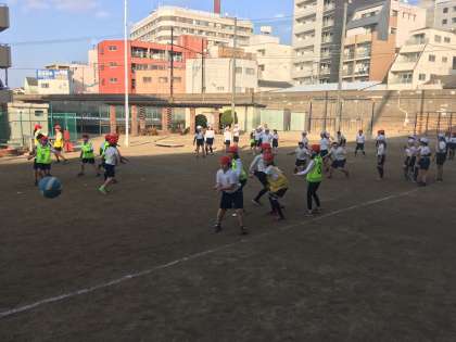 工事中のため校庭は狭くなっていますが、その中でできるだけ広くコートを取り