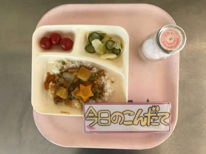 3月15日(木)の献立は「チキンカレーライス・キャベツときゅうりのサラダ・プチトマト・牛乳」でした。給食室からのにおいで、「今日の給食はカレーや!」と給食の時間を楽しみにしてくれていた子どもたちでした。6年生にとっては、小学校最後のカレーライス、しっかり完食してくれていました。