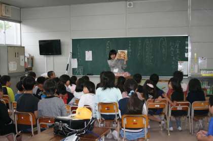 岸里小学校では、地域の方や保護者の方にボランティアでご協力いただき、水曜日の朝、読み聞かせ活動を行っています。今日は今年度初めてのよみきかせが、3年生と4年生でありました。「今日はどんなお話がきけるのかな・・・」楽しみにしている子どもたちも多く、みんな静かに楽しみながら聞いています。これからいろいろな学年でも始まりますので、みんな楽しみにしていてね。(写真は4年生の様子です。3年生には、「本のはかせ」? があらわれたそうです。)