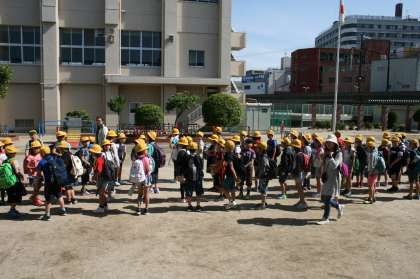 今日から春の遠足が始まりました。トップバッターは、4年生!!服部緑地に向けて出発しました。