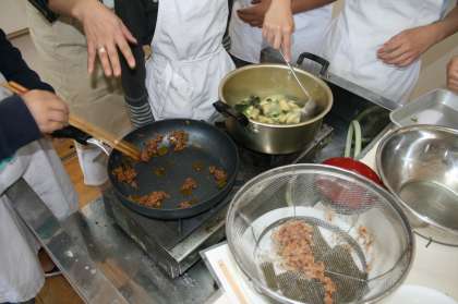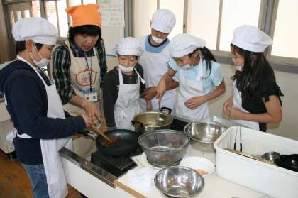 今日は、家庭科・総合的な学習の時間を使って、和風だしの体験学習をしました。かつおだし・昆布だし・合わせだしについて学び、飲み比べ。「おいしい!!」日頃、あまり気にすることが少ないだしのすごさにみんなびっくり。そのあとは、だしを生かして、みそ汁と佃煮を作りました。あっという間に時間が過ぎてしまう楽しい時間でした。ご協力いただいた大阪ガスの皆さん、ありがとうございました。