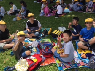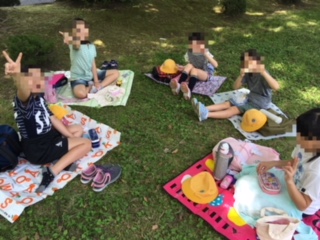 見学の後は、広い芝生でお昼ごはんを食べました。