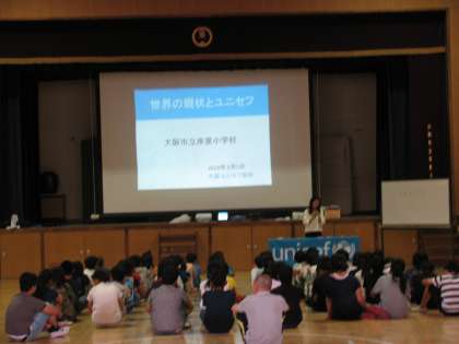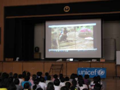 日本ユニセフから来校いただき、世界の国々についての学習をしました。説明やDVDを見たり、簡単な体験をしたりしながら、世界の子どもたちについての学習をしました。水に困っている人たちや栄養が足らなくて命を落としてしまう子どもたちについて考えました。第2回目は、6月18日(月)を予定しています。