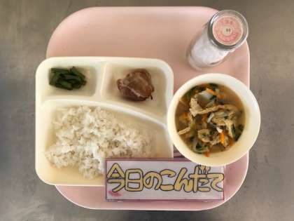 6月13日(水)の献立は「鶏肉のしょうゆバター焼き・みそ汁・三度豆のからしじょうゆあえ・ごはん・牛乳」でした。普段は、冷凍で出ることが多い三度豆ですが、今の時期は、生の三度豆が登場します。低学年の児童が、生の三度豆のおいしさを感じてもらえたのか「今日のお豆のおかず、おいしかった!」と、うれしい言葉を聞かせてくれました。