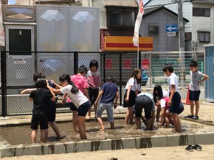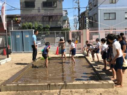 14日は、2組がトンボを使って、土をならす作業を行いました。
