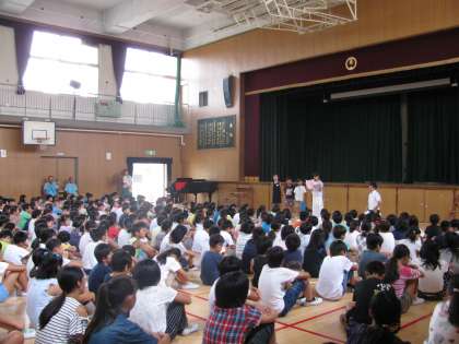 終業式では、児童の作文発表がありました。しっかりと発表することができました。