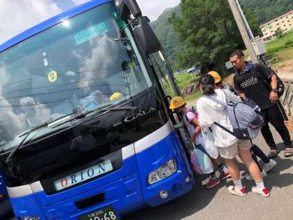 3日間お世話になった青い鳥のご主人・スタッフの皆さんにお礼を言い、午後1時、予定通り学校に向けて出発しました。