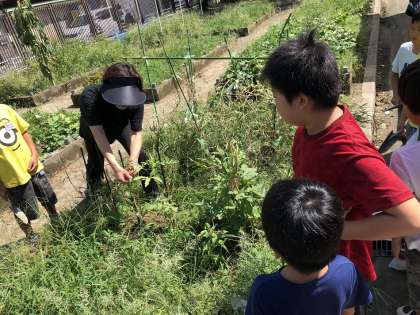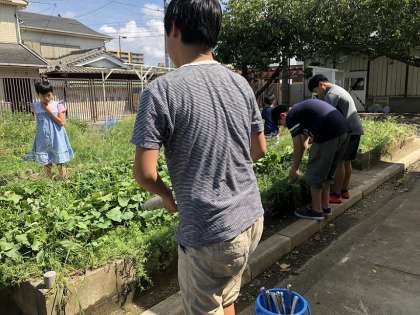 その後、学習園の手入れをしました。学習園は夏の間に伸びた雑草が生い茂っていましたが、みんなで協力して汗を流しながら雑草を抜き、とてもきれいになりました。