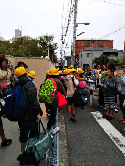 午前6時40分集合。集合時刻より、かなり早く来る児童もいました。