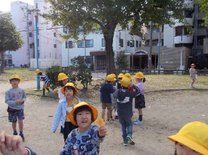 今日は、学校近くの公園で、落ち葉をたくさん拾いました。
