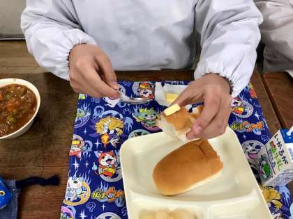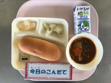 1月9日(水)の献立は「ビーフシチュー・カリフラワーのピクルス・和なし(缶)・コッペパン・バター・牛乳」でした。寒い日の、ビーフシチューは体が温まり、子どもたちにも大好評でした。3年生の教室では、添加物のバターを、パンをちぎってスプーンで上手につけながら食べていました。