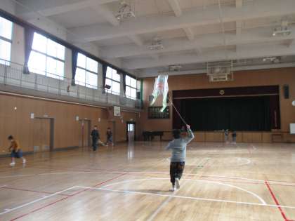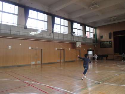 3学期第2回目のさくらんぼタイムは、凧あげをしました。運動場が工事中のため、体育館での凧あげになりましたが、空高くあがれと願いを込めて懸命に走りました。みんな、楽しく飛ばすことができ、たくさんの笑顔を見ることができました。