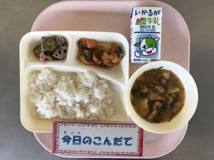 1月18日(金)の献立は「さけのなんばんづけ・もずくのおみそ汁・れんこんの赤じそあえ・ごはん・牛乳」でした。今日の献立は、学校給食献立コンクール優秀賞作品です。「寒い冬に体があたたまり、海藻や野菜をおいしくたくさんとれるようにしました。」をねらいに考えられていました。