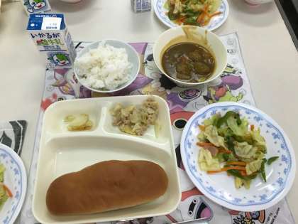 給食の時間に、一緒に食べました。とても豪華な給食になりました。
