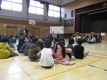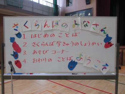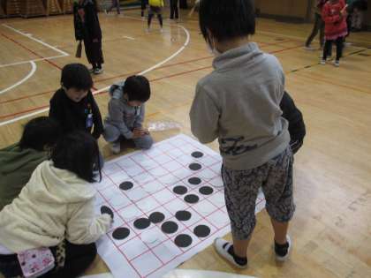 3学期第4回目のさくらんぼタイムは、1年生が昔あそび大会にさくらんぼの友達を招待してくれました。はねつきやかるた、こままわしなど、8つのあそびコーナーがありました。1年生は、一生懸命に、遊び方や使い方を教えてくれました。一緒にジャンボオセロをしたり、かるたをしたり、笑顔いっぱいの交流学習になりました。