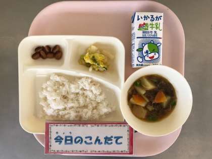 3月8日(金)の献立は「肉じゃが・はくさいのゆず風味・とら豆の煮もの・ごはん・牛乳」でした。給食には、10種類ほどの豆が登場します。今日の給食には、とら豆の煮ものが出ました。給食によく登場するゆず風味の野菜は、どれも子どもに人気の野菜献立です。