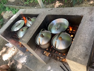 最後のプログラム「飯盒炊さん」を行いました。かまどに苦労しましたが、協力して美味しいカレーを作りました。