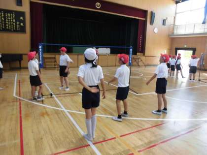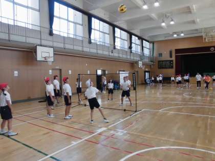 4年生は1組2組合同で「キャッチバレーボール」に取り組みました。