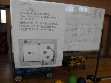 学習を始めて間もないので、動きはまだぎこちないですが、「どうしたら点を取れるだろう」と考えながら、楽しんで運動しています。チーム戦なので、チームワークも大切ですね。