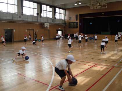 【学習の様子】1年体育「ボールあそび」(9/10)