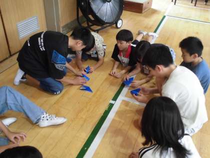 縦割り班で協力して、声を掛け合って活動しました。限られた時間でしたが、たくさん折ることができました。
