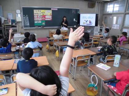 2年生は、栄養教諭の方を講師にお迎えして、「食べ物の働き」について学びました。