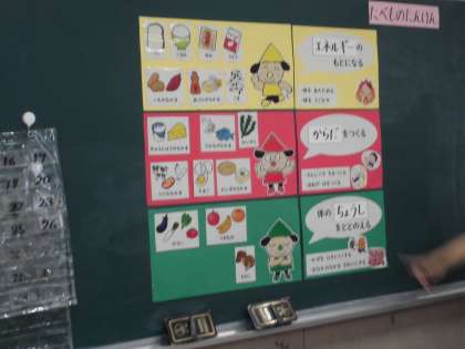 それぞれの食品がどの色の仲間なのかを学びました。「食品そのものの色にとらわれないように」という注意もしっかり頭に入れることができました。