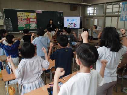 食べ物の働きを覚えるためのポーズも楽しく学習していました。