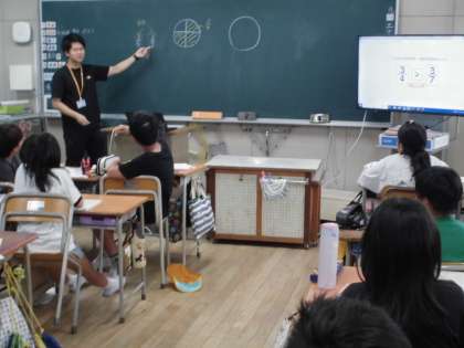 同じ分母なら分子の大きいほうが大きい、分子が同じなら分母が小さい方が大きい。「ケーキで考えたらわかるよ!」生活に根差した発言に、みんな納得です。