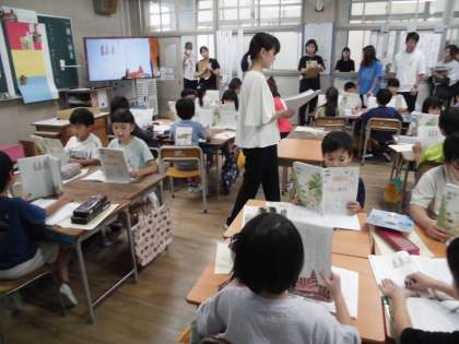 たくさんの先生方が参観されましたが、物怖じすることなく、元気に学習していました。