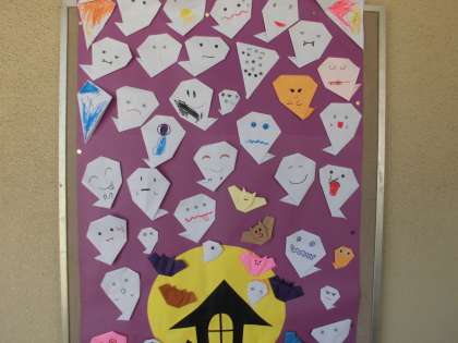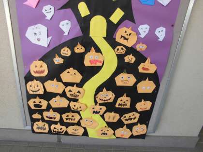 個性的なオバケやカボチャがたくさん集まって、楽しい掲示が出来上がりました。ハロウィンが待ち遠しいですね。