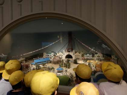 最初に社会見学も兼ねて「くらしの今昔館」を見学しました。昔の人々の暮らしの様子や、大阪の昔の様子を、楽しく学びました。