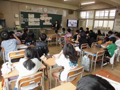 栄養教諭の先生を講師にお迎えして、食育の指導を行いました。テーマは「魚の体のつくりと栄養」で、普段何となく食べている魚のひみつについて学習しました。